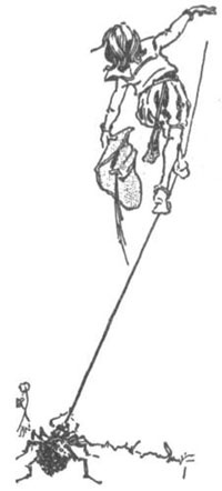 Пробравшись над блестящими иглами целым и невредимым, Тимтом быстро зашагал дальше, стремясь наверстать время, потерянное всеми задержками. Когда он добрался до места, где на него он обрушился буран, то обнару-жил, что птицы склевали весь попкорн, и он может идти дальше без помех.