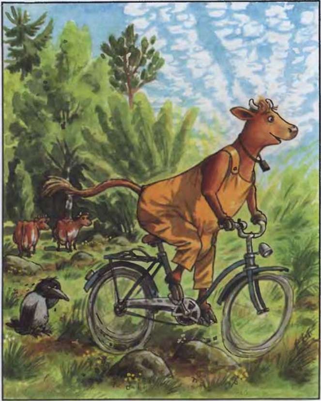 — Пока ты не научилась ездить на велосипеде, на пастбище была тишина, — сказал Ворон и вздохнул. — От твоего велосипеда столько шума.