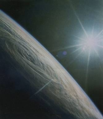 На этом снимке, сделанном из космоса, можно видеть, что в действительности солнечный свет имеет белую окраску. Здесь же виден циклон на поверхности Земли. Он порожден совокупным действием двух факторов: тепла, излучаемого нашей звездой, и вращения Земли вокруг собственной оси.