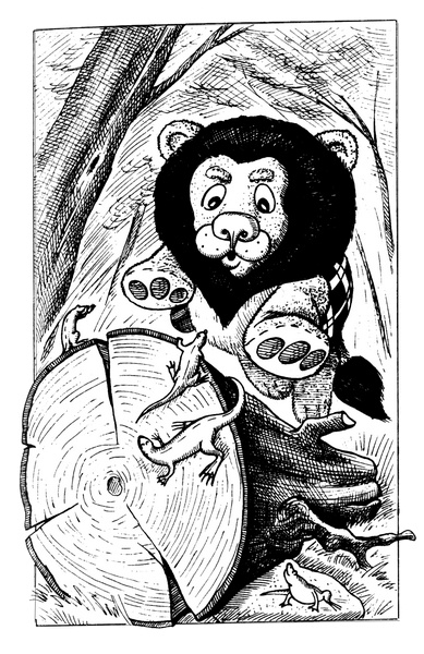 Распластавшись на бревне, крокодилы как ни в чём не бывало нежились на солнце. Мефодий изловчился и бесстрашно кинулся на кровожадных хищников, но крокодилы сражаться не собирались. Они бросились врассыпную, юркнув под бревно. Львёнок обошёл поваленное дерево со всех сторон, пошурудил под ним лапкой — всё напрасно.