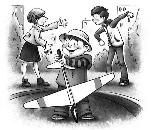 Сказано – сделано. Женька вцепился в карапуза, Лёха – в планер, карапуз заревел. Майка с криком «Сейчас же отпусти его!» бросилась на спасение брата. Образовалась куча мала. Скоро было не разобрать, кто в кого за что вцепился и куда тащит. И тут раздался треск…