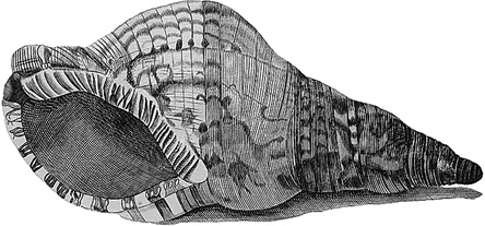Хотя я восхищался этой раковиной много лет назад, я могу описать ее так точно, потому что сейчас она у меня перед глазами. Это прекрасный экземпляр харонии изменчивой (Charonia variegata). Представителей этого вида можно увидеть на минойских фресках и у Боттичелли (“Венера и Марс”). Рожки эгейских рыбаков – потертые раковины с отверстием – и сейчас можно найти на афинском рынке Монастираки. Аристотелю они были известны как kēryx, “глашатай”.