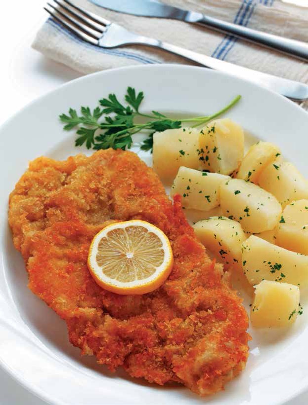 Одно из основных блюд австрийской кухни. Тонкий кусок телятины (из бедренной части или филе) обваливается в панировке и обжаривается в свином жире или сливочном масле. Толщина шницеля не должна превышать 4 мм. Название «венский шницель» закрепилось за блюдом в конце XIX века, после того, как рецепт был опубликован в кулинарной книге 1884 года. Примечательно, что за право считать это блюдо своим национальным австрийцы борются с итальянцами – у тех аналогичный рецепт носит название «миланский шницель».