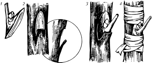 2) немного приподняв кору в верхней части разреза, слегка раздвинуть его с помощью ножа;