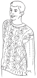 Спинка. На спицы № 3 наберите 119 петель и свяжите для планки 5 см (14 рядов) по схеме. Затем перейдите на спицы № 4 и вяжите вертикальным узором с ромбами, как описано, при этом в 3-м ряду схемы выполните обозначенные прибавления. У вас получится 130 петель. Через 35 см (92 ряда) от планки закройте для пройм с обеих сторон по 3 петли и в каждом 2-м ряду 1 раз по 2 и 2 раза по 1 петле. У вас получится 116 петель. Через 55,5 см (144 ряда) от планки закройте для скосов плеча с обеих сторон 10 петель и в каждом 2-м ряду 3 раза по 10 петель. Одновременно с 1-м убавлением плеча отложите для выреза горловины средние 30 петель и обе стороны закончите раздельно. Для закругления закройте с внутреннего края в каждом 2-м ряду 1 раз по 2 и 1 раз по 1 петле. Через 57,5 см (150 рядов) от планки все петли должны быть закрыты.