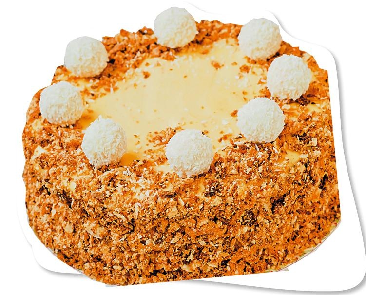 4. Взбить 200 г размягченного сливочного масла, добавляя порциями крем. В конце добавить мандариновую цедру. Собрать торт, промазывая каждый корж толстым слоем крема. Обрезки раскрошить и обсыпать бока торта. Убрать торт в холодильник на ночь. Украсить конфетами.