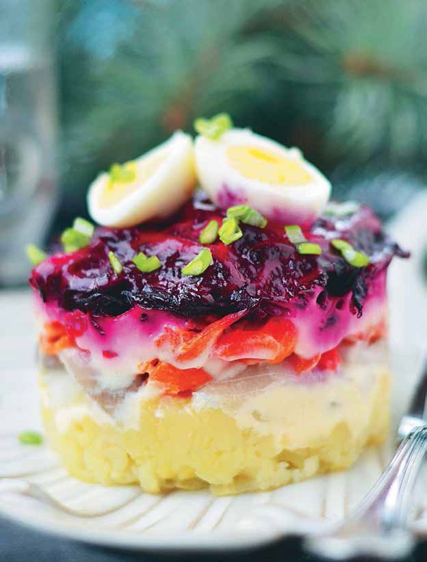 Блюдо русской кухни, салат из сельди и отварных овощей, главным из которых можно назвать свёклу, придающую блюду нарядный вид. Именно поэтому в советское время без селёдки «под шубой» не обходилось ни одно застолье. Особую популярность «шуба» получила в 70-х годах прошлого века, когда салат стал популярным праздничным блюдом во всех советских республиках.