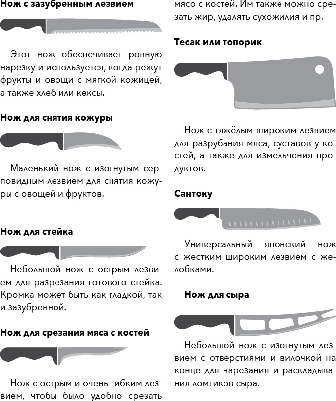 • Лучшие кухонные ножи производятся из высококачественной нержавеющей стали. Ножи с кованым лезвием – самые долговечные.
