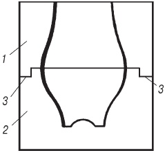 Когда гипс затвердеет, разберем ограждение и освободим модель от глины. Вытащим модель, держа ее одной рукой и слегка постукивая деревянным молотком в стенку затвердевшего гипса. Мы получили один кусок формы. Зачистим и выровняем ее с той стороны, где гипс касался глины. Там же ножом вырежем конусообразные гнезда для замков. С помощью этих замков две половинки будут точно совпадать и не смещаться (рис. 62).