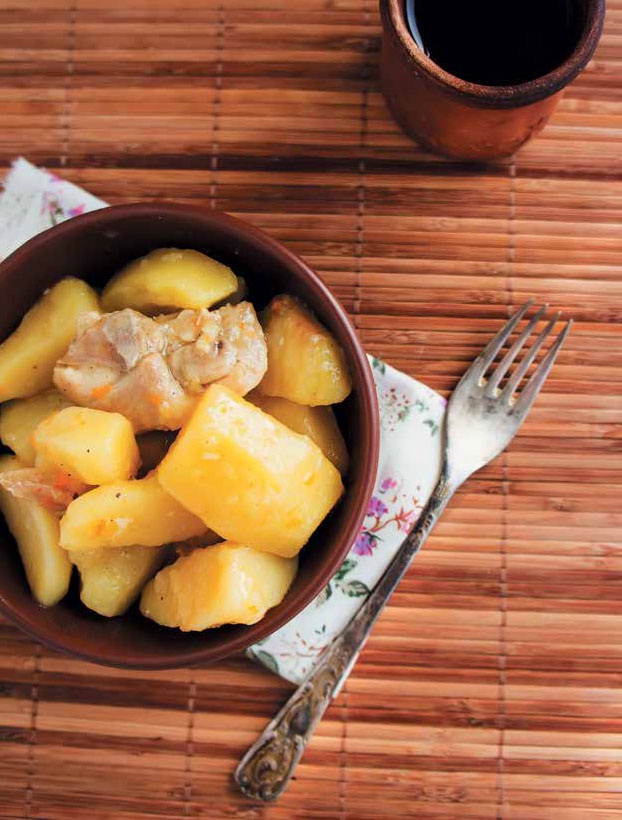 • Мясо промыть и нарезать на средние куски. Картофель и лук очистить, нарезать крупно.