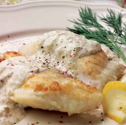 Положите рыбу на тарелку, залейте соусом и подавайте к столу.