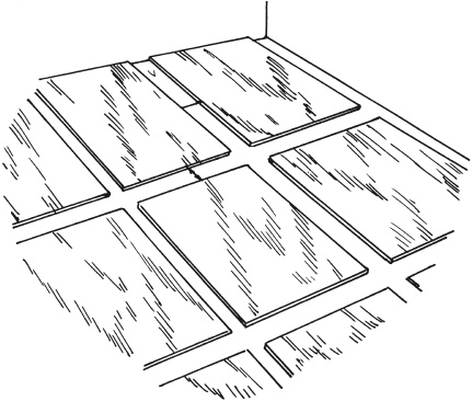 Когда ламинат укладывают большими пластами, то нужно знать, что если площадь укладываемого ламината по длине или ширине превышает 12 м и составляет более 120 – 150 м2, то крайне важно обеспечить компенсационные швы 12 мм шириной. Если этого не сделать, то появятся щели, а само покрытие придет в негодность (рис. 78).