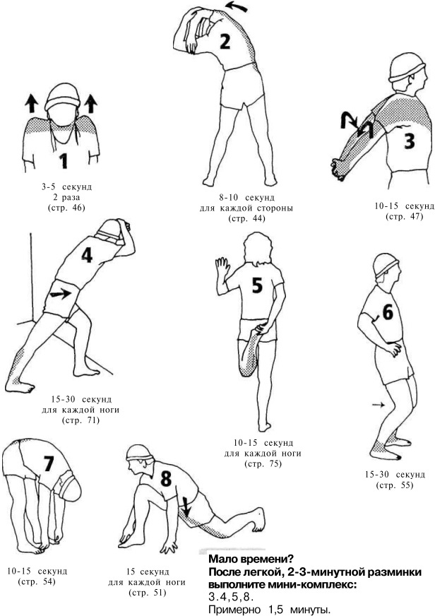 2-3 минуты — на разогрев мышц перед растягиванием.