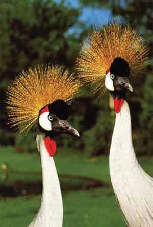 Африканские венценосные журавли, как и все другие журавли, верные семьянины – после весенних брачных танцев пары у них образуются надолго, до смерти одного из супругов.
