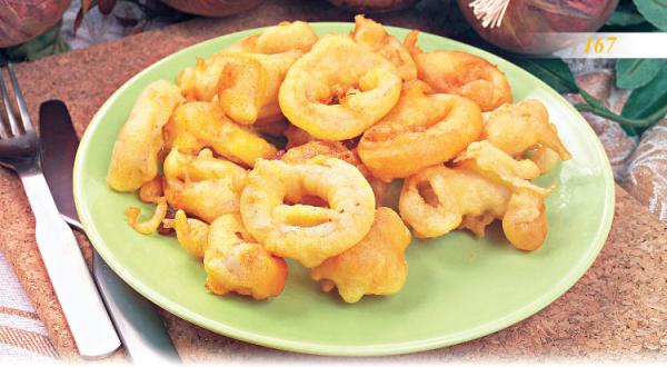 Обмакните кальмаров в кляр и жарьте на раскаленном растительном масле до золотистого цвета.
