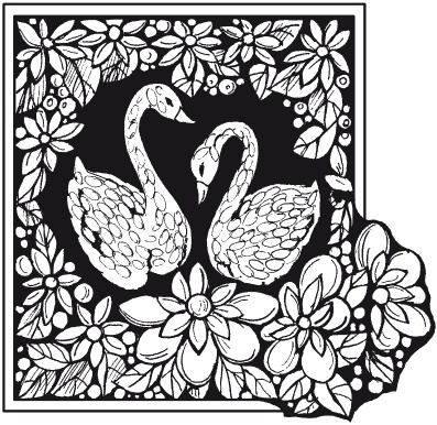 Теперь можно приступить к выполнению фигур лебедей. Их нужно смазать клеем и заполнить зернами длинного риса, соблюдая общие линии контуров фигур и крыльев. На шеях и крыльях зерна риса класть вертикально. На головах и остальных частях фигур – горизонтально.