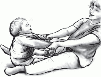 – Посадите ребенка на колени лицом к себе, возьмите его за руки и спойте что-нибудь мелодичное, раскачиваясь вместе с ребенком в такт музыке.
