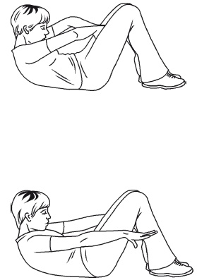 Техника выполнения: в этом положении плавным движением медленно поднимите к груди колени, одно за другим и выпрямите ноги вверх. Обхватите руками заднюю поверхность бедер и разведите локти в стороны. Медленно поднимите над поверхностью голову и плечи, округляя спину. Затем вытяните руки вперед, параллельно поверхности и медленно, с амплитудой в несколько сантиметров, выполните движение руками вперед-назад. Если вы почувствовали напряжение в области шеи, согните руки в локтях и положите на затылок.