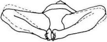 Согните ноги в коленях, соедините подошвы ступней и расслабьтесь. В таком приятном положении растягиваются мышцы паха. Удерживайте растяжку 30 секунд. Дайте силе тяжести растянуть эту область тела естественным образом. Для большего удобства можно положить под голову маленькую подушечку.
