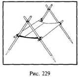 Из собственного, перекинутого через жерди и сшитого в середине плаща или куска прочной ткани можно сделать настил по способу, показанному на рис. 229.