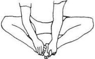 Лежа на полу, подтяните колени к груди. Обхватите руками голени чуть ниже коленей. Чтобы растянуть внутреннюю часть бедер и область паха, медленно разводите руками ноги в стороны и вниз, пока не почувствуете легкой растяжки. Удерживайте положение 10 секунд. Голова может лежать на полу или на маленькой подушечке или же ее можно оторвать от пола, чтобы направить взгляд между ног.