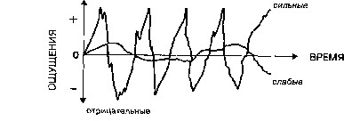 На самом деле график этот не плоский. Есть граничная линия, где противоположности сходятся: ощущения положительные и отрицательные, достигая предельной и запредельной силы, иногда соседствуют, смешиваются и даже переходят друг в друга: боль и наслаждение, горе и счастье.