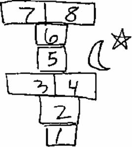 Может быть. Может быть и так. И он почти убедил себя в этомк пятнице — последнему дню занятий. Домой он шел один: Салл-Джон вызвалсяпомочь убрать учебники на склад, а Кэрол пошла к Тейни Либел на день рождения.Он уже собрался перейти Эшер-авеню и пойти вниз по Броуд-стрит, как вдругувидел начерченные на тротуаре лиловым мелком “классики”. Вот такие: