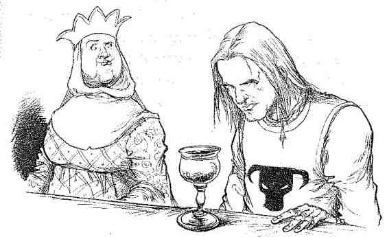 Я продолжал трапезу, погруженный в глубокое раздумье. Ее величество обещано в жены рыцарю Хенгисту, этой грубой и неповоротливой скотине, противостоит которому только слабый юноша-трубадур! Неудивительно, что она обратилась за помощью именно ко мне! Что будет делать бродячий певец, если он окажется один на один с таким свирепым гигантом? И к тому же у него наверняка нет ни гроша за душой! Я от всего сердца хотел помочь влюбленным.