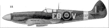 18. «Спитфайр» Mk XII «EN237/EB-V» командира 41-й эскадрильи скуад-рон-лидера Томаса Нейла, Хаукинг, весна 1943 г.