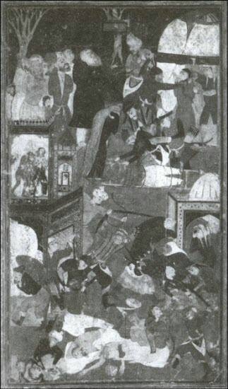 Разорение Исфагана в 1387 году, сцена одного из самых кровавых преступлений Тимура. 70000 человек были убиты, когда город восстал против него уже после захвата. Из книги XVI века «Тимурнама».