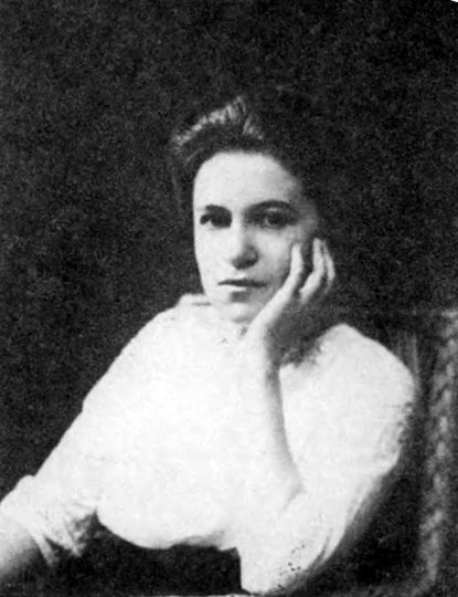 Е. Г. Ларина (крайняя слева) в Петрограде. В центре — А. М. Коллонтай и Ф. Ф. Раскольников. Второй справа П. Е. Дыбенко.1917