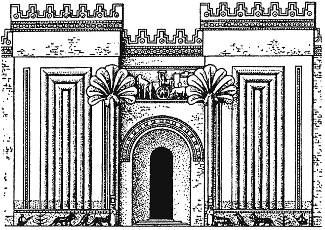 Рис. 3.11. Дворец Саргона II в Дур-Шаррукине. Реконструкция: а – общий вид; б – главный вход