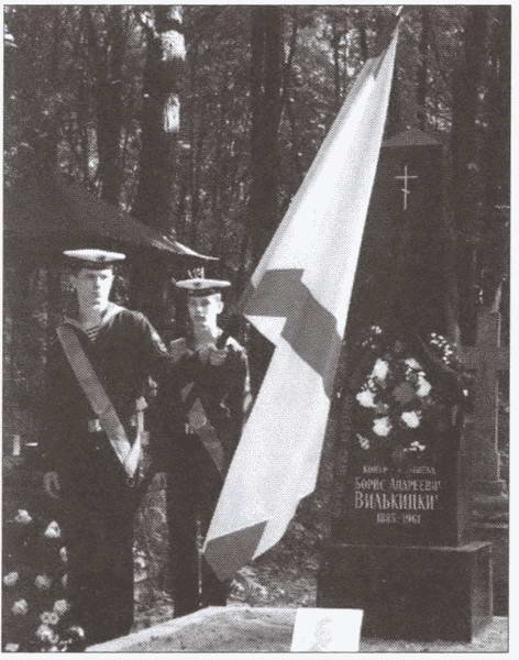 Российский флот помнит своего Колумба. Почетный караул у новой могилы Бориса Вилькицкого на Смоленском кладбище. 1996 г.