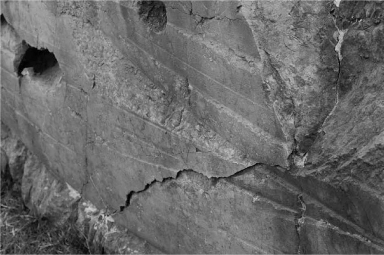 Рис. 23. Следы распиловки на блоке возле «гробницы» в Микенах