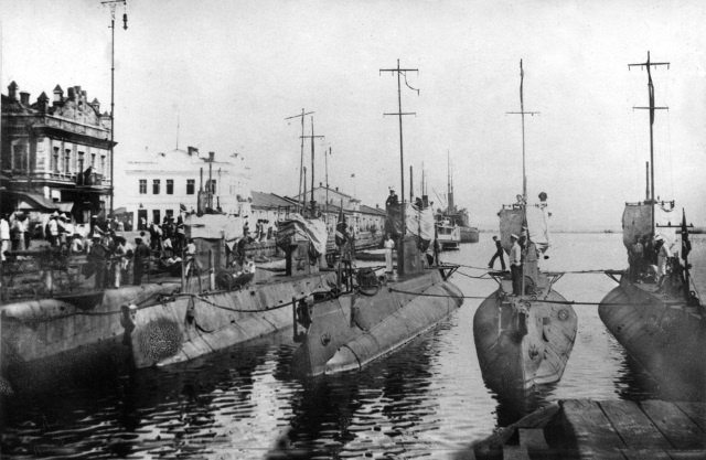 Подводные лодки «Коммунист» (бортовой №-17), «Шахтер» (бортовой №-16), «Политработник» (бортовой №-19) и «Марксист» (бортовой №-18). Одесса.1923 год