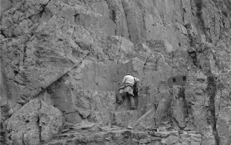 Рис. 11-ц. Пропилы на площадке на скале в Ольянтайтамбо
