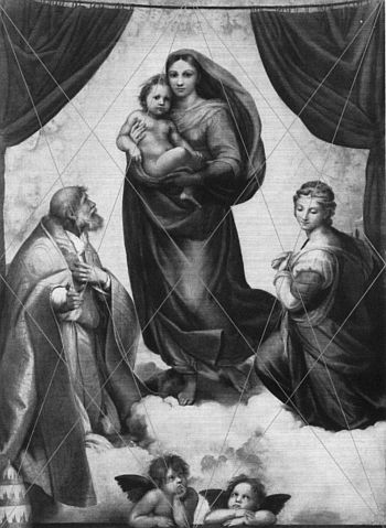 Композиционная схема «Сикстинской мадонны» Рафаэля. Свое вдохновение художник подчиняет геометрическому расчету.