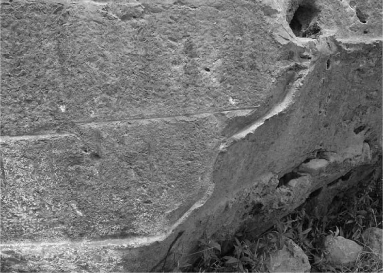 Рис. 39. Вертикальные следы обработки на блоке в Саксайуамане