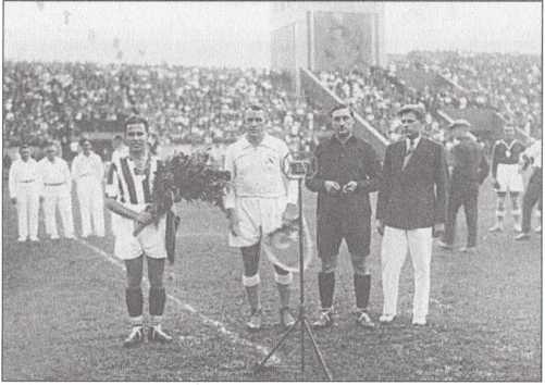 Перед матчем Ленинград — Турция. Второй слева — капитан ленинградской сборной Михаил Бутусов. 1934 г.
