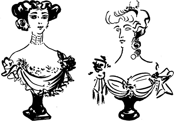 Тогда еще не прошли времена пышных куафюр. У моей матери не было собственной служанки, и она была вынуждена сама делать себе прическу: обычно волосы зачесывались вверх и укладывались по бокам валиками с наполнителем, чтобы держали форму, и украшались янтарем, черепаховыми гребнями или фальшивыми бриллиантами. Обычно по понедельникам она садилась и кропотливо и обреченно укладывала прядь за прядью, локон за локоном и под конец все равно бывала недовольна. Принималась что-то подправлять, укоризненно глядя на себя в зеркало… и все начиналось сначала. Лицо наливалось кровью, руки затекали, и она не успевала не то что к началу – к концу званого обеда.