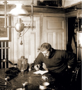 Командир яхты «Заря» лейтенант Н. Н. Коломейцев в кают-компании, 1900 г. Из фондов СПФ АРАН. Публикуется впервые.