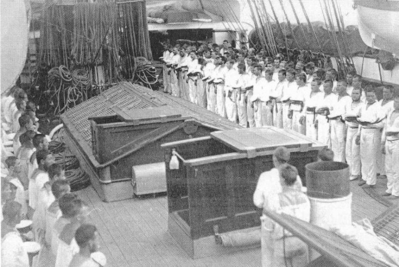 На "Витязе" в дальнем плавании. 1886-1889 гг. День Нептуна при прохождении экватора