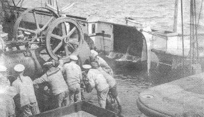 Во время работ по снятию "Витязя" с камней. Май 1893 г.