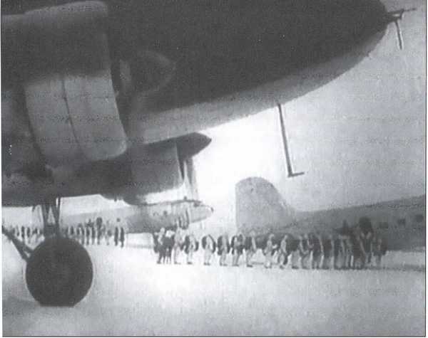 Рядом с бойцами сани и матерчатые контейнеры, приготовленные к выгрузке
