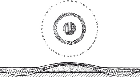 Рис. 5. План и разрез кургана раннего бронзового века, расположенного к северу от Карпатских гор (Кочановка около Тернополя)