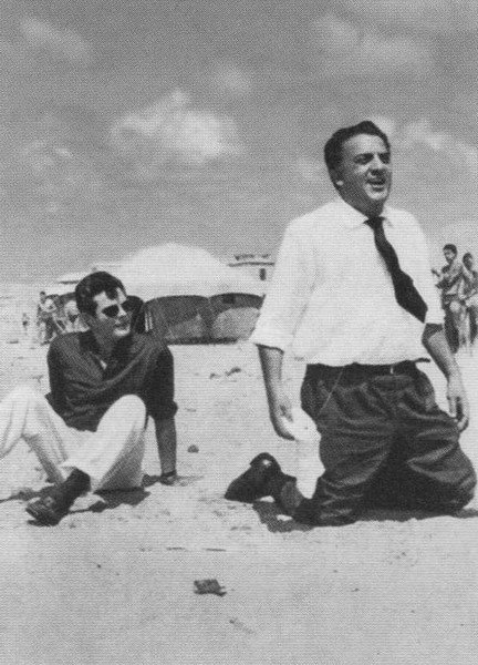 Марчелло Мастроянни и Федерико Феллини на съемках фильма «Сладкая жизнь». 1959 г.