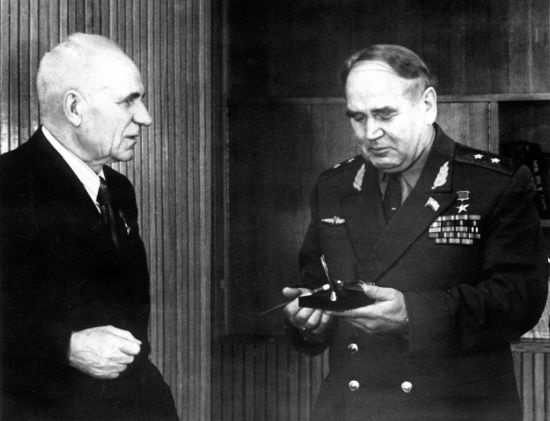Выдающиеся генеральные конструкторы, создатели многих авиадвигателей Архип Михайлович Люлька и Николай Дмитриевич Кузнецов. 1978 год.