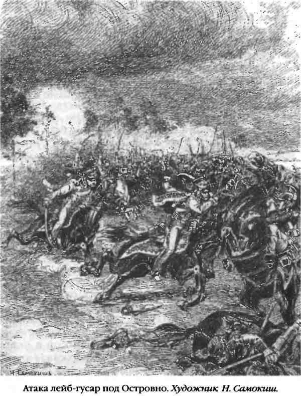 «Когда неприятельская кавалерия прорвалась сквозь наш центр, то три эскадрона кирасир вместе с лейб-гвардии Гусарским полком, — говорилось в донесении Барклая-де-Толли, — ударили ей во фланг и в тыл и повторяли потом свои атаки вместе с прочею кавалериею, чем нанесли неприятелю большой вред…»