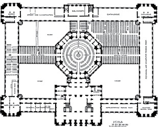 План читального зала и книгохранилищ Британского музея. Library Buildings of Britain and Europe.