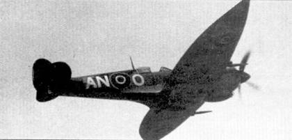 Истребитель «Спитфайр» Мк VIII, обратите внимание нга вытянутые законцовки плоскостей крыла высотной модели истребителя. Этот самолет принадлежит 4/7-й эскадрилье, летом 1943 г. подразделение базировалось на аэродроме Лентини в Италии.